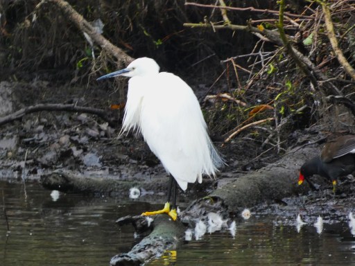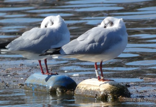 Little Egret very confiding bird three colour ringed birds, Coot C218 green ring black lettering, Lesser B/B Gull K=V red ring black lettering and Black-headed Gul 9RK white ring black lettering. I have submitted this bird previously but have not received any feedback. Also Raven 4 Teal 3 not little Grebe which is unusual.