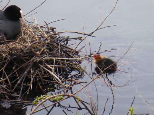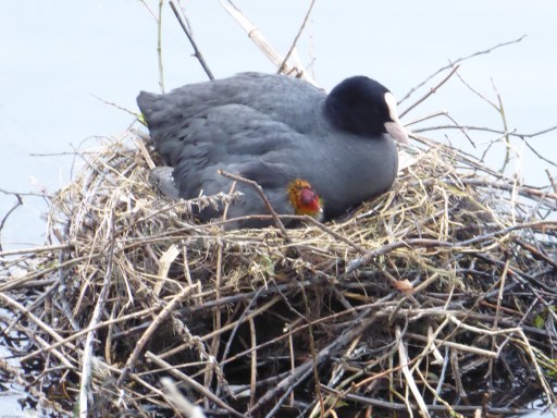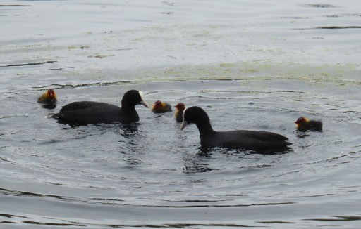 An amazing 208 Coot Mute Swan 73 Tufted Duck 13 Teal 4 Moorhen 10. Two colour ringed L/B/B/ Gull and one Black-headed Gull. Also a pair of Coot with four recently hatched chicks.