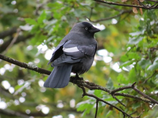 Jackdaw with single white feather.