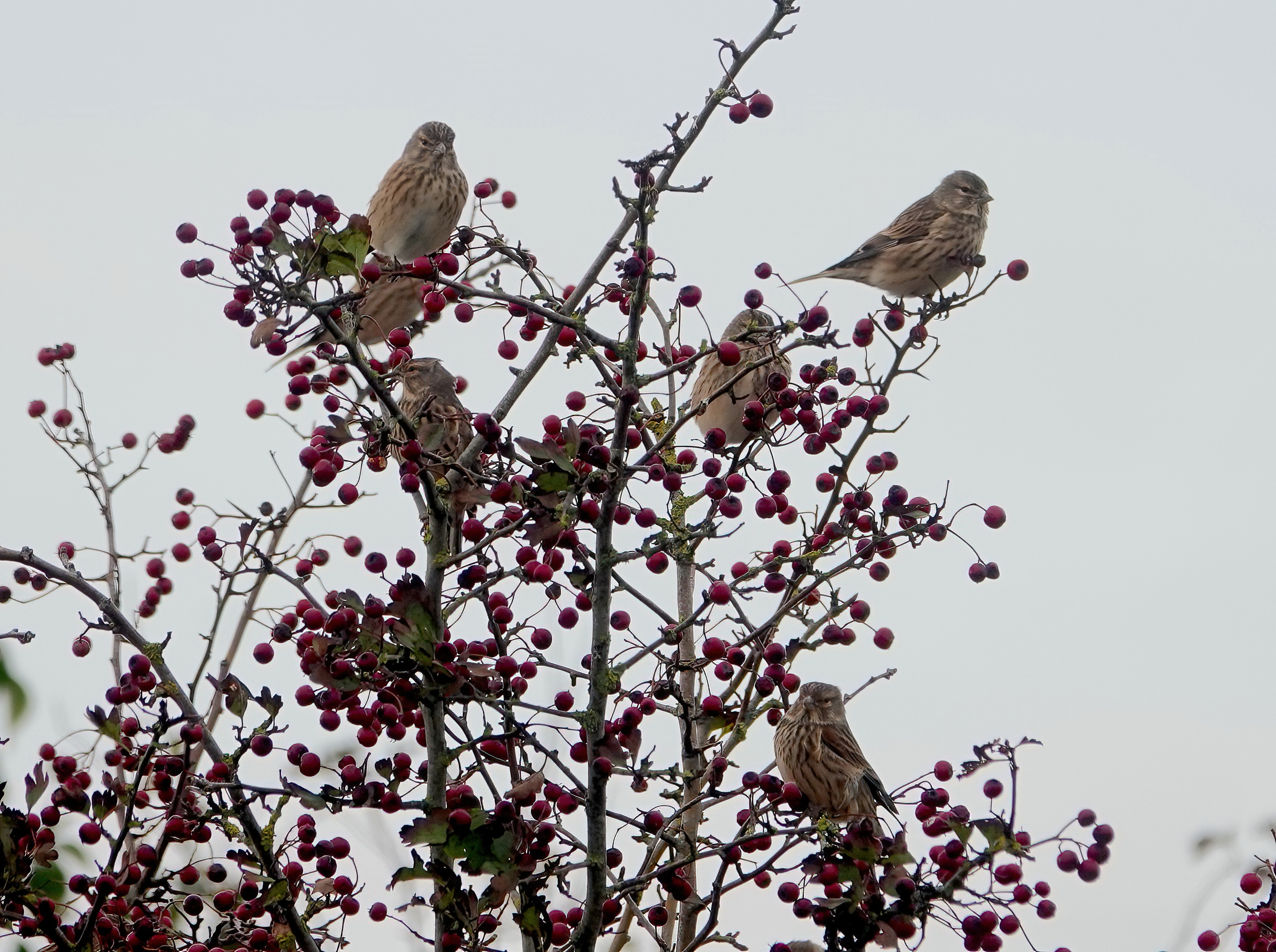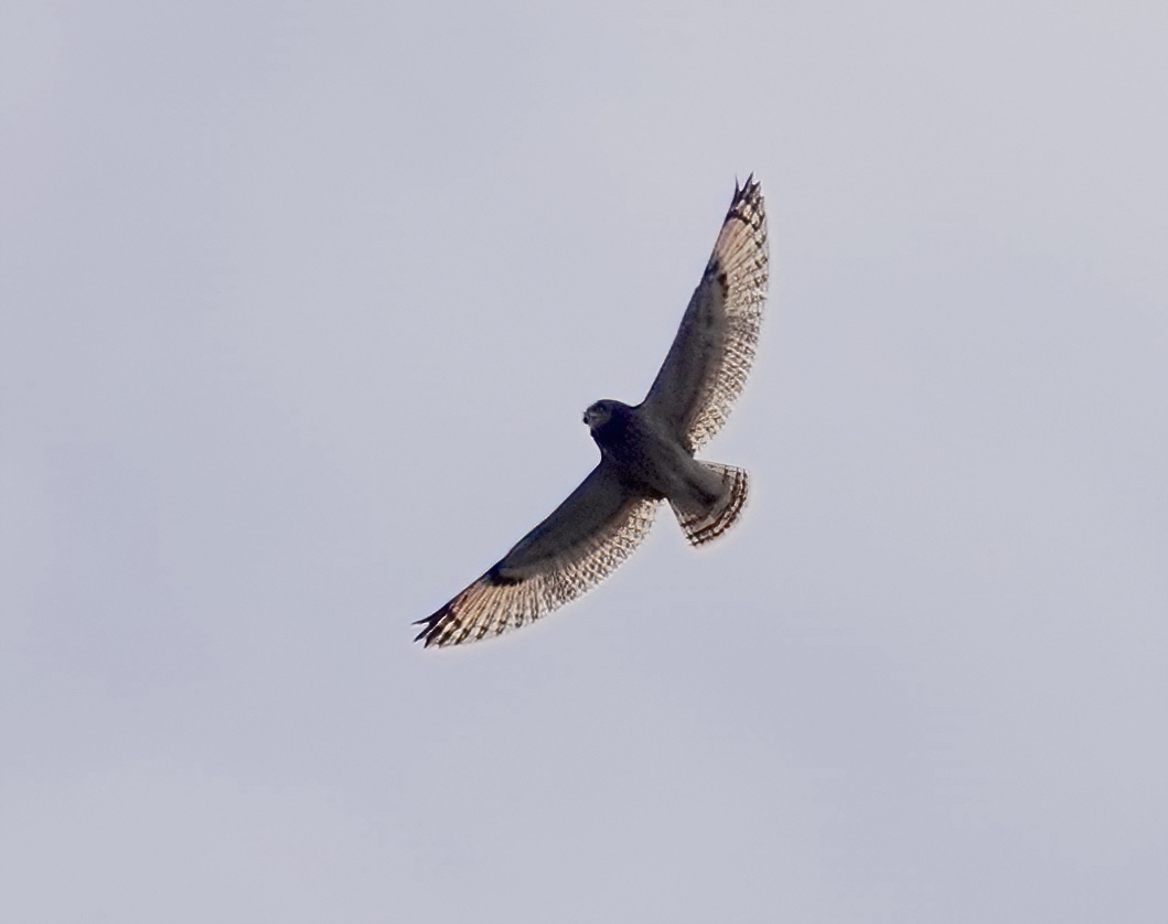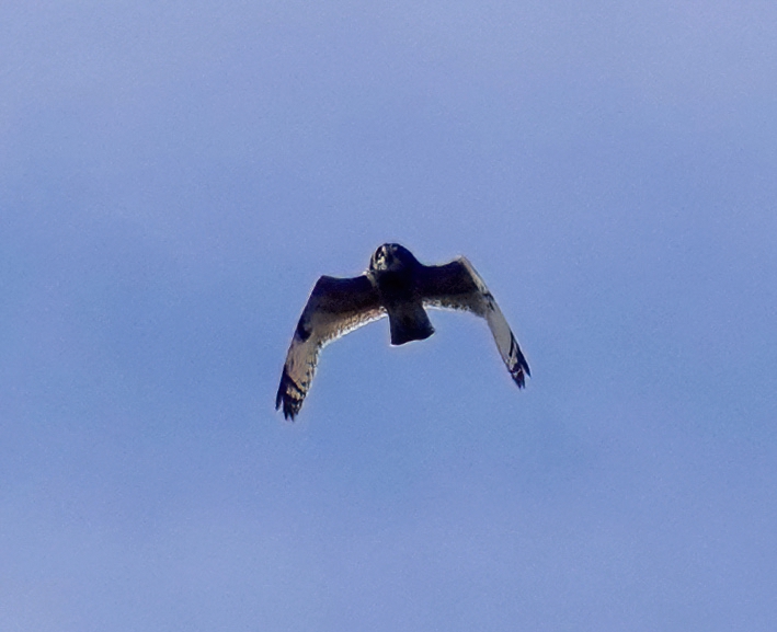 In the light drizzle and v poor light at Cosmeston this morning. I was walking across W paddock when a Kes came and alighted in the hedge, but only briefly as a second Kes flew in a flushed it off. The camera wasn’t ready but they flew up fairly high then had a kind of dog fight. I think they were both young birds and there was no real aggression. Nice to watch tho’. One pic below shows how distant they were when I took the pix, hence they are pretty fuzzy.