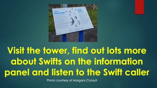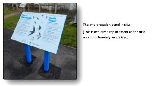 An interpretation panel was sited next to the tower to help inform passers-by of the plight of Swifts.