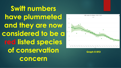 Glamorgan Bird Club has been out and about spreading the word about the plight of Swifts. Talks have been delivered in Canton, Barry, Whitchurch, Brecon, Pontypridd, Llanederyn, Tonddu, Penarth, Chepstow and Pencoed.